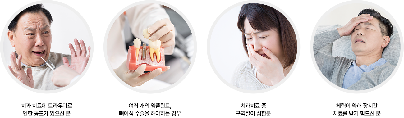 흡인가스, 약제, 정맥주사 등의 수면진정효과가 있는 약물을 투여하여 환자를 가수면상태에서 치료가 이루어지므로
