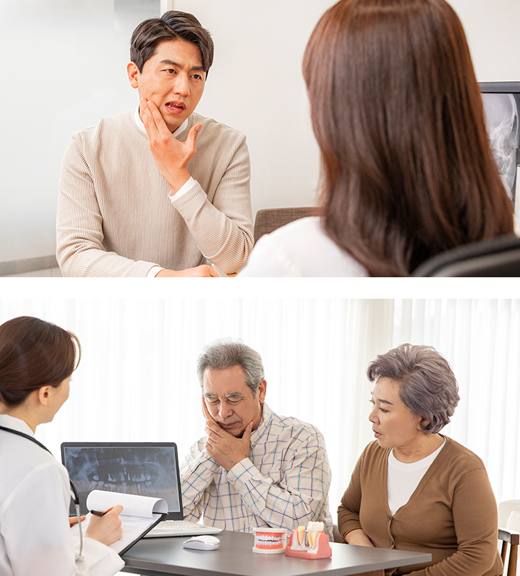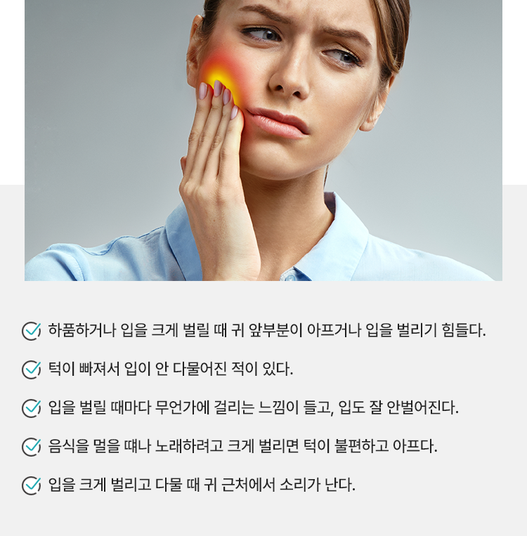 턱관절 디스크의 문제인지, 턱관절 주변의 근육이 문제인지, 관절의 염증이 문제인지를 정확히 분석해서 치료해야 합니다.